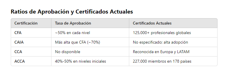 Descubre las principales certificaciones financieras como CFA, CCA, CAIA y ACCA. Compara requisitos, beneficios y salidas profesionales para potenciar tu carrera en finanzas, estrategia empresarial, inversiones y contabilidad.